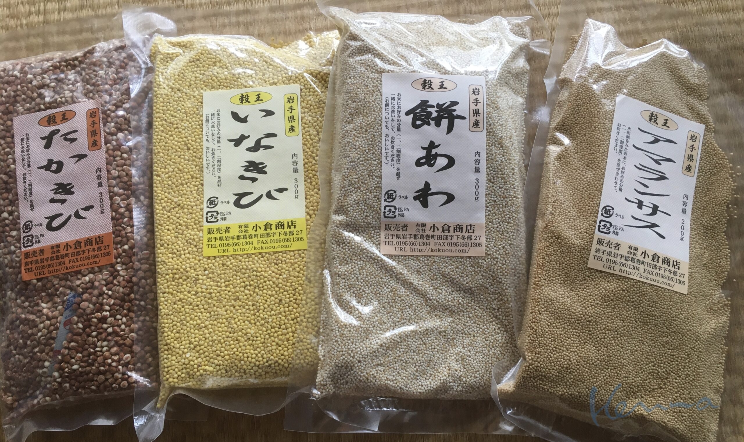 選んだ雑穀4種類は含まれているビタミンとかをみて、母も食べられるように粒の小さいものにした。
