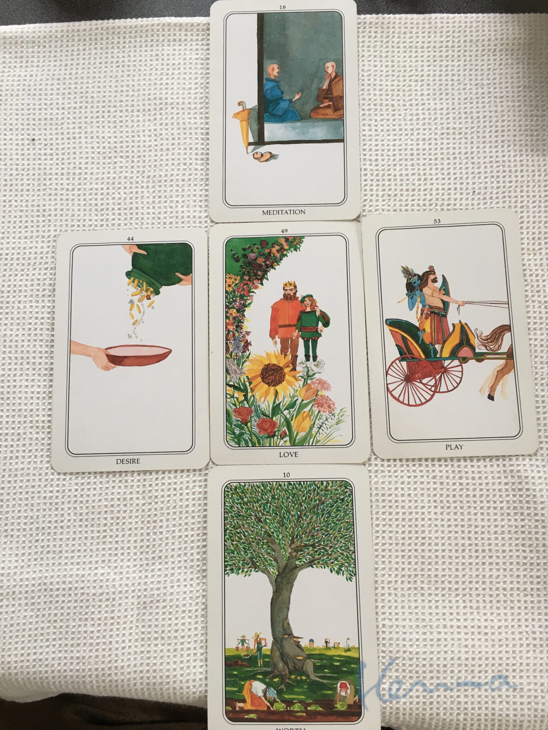 上のMEDITATION(瞑想)のカードは問題点の位置になるわけだが、この元旦の時点では「お〜瞑想ね」くらいだった。