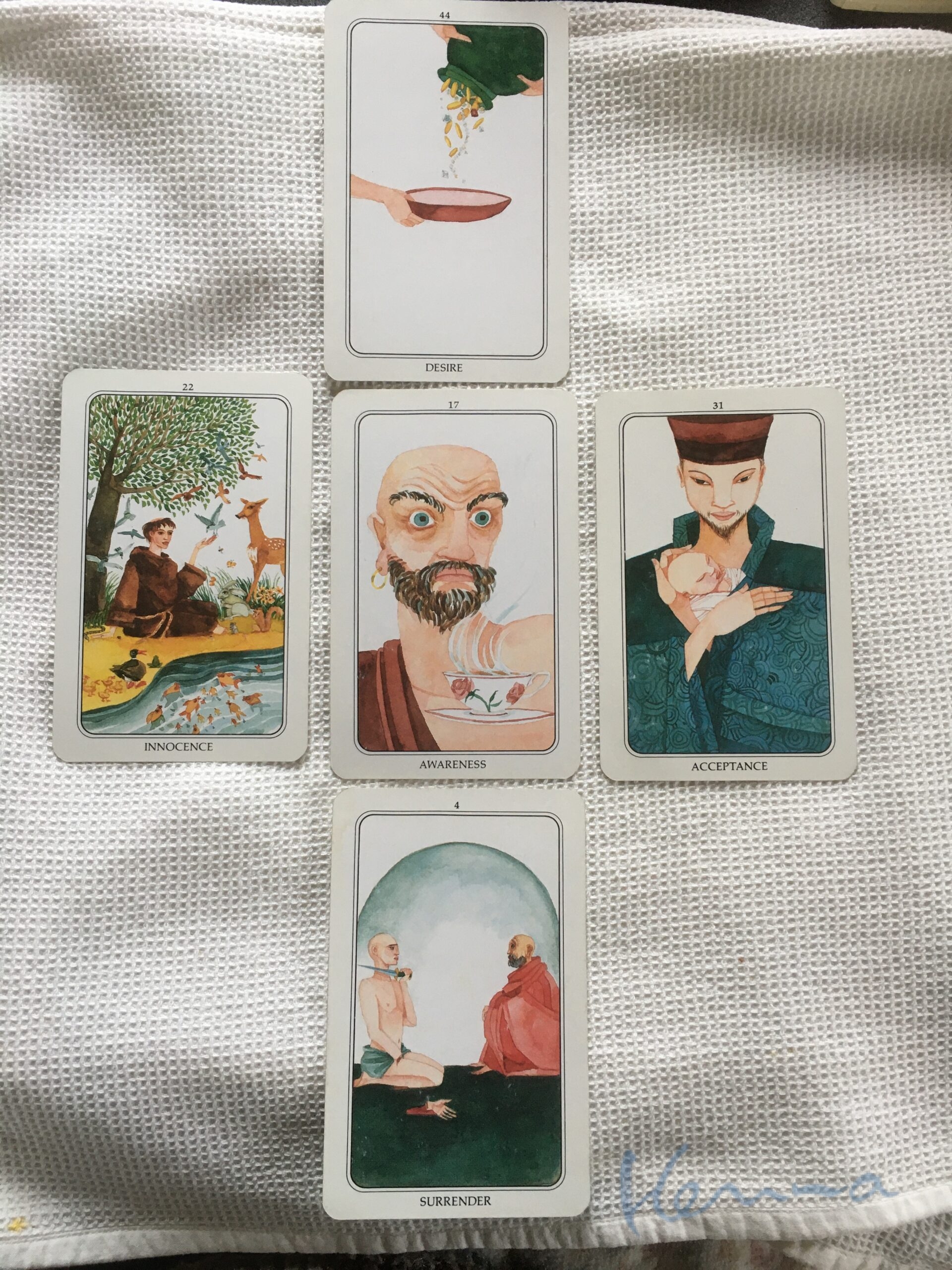 2024年最初に引いたカードの記事を書こうとしていたのがこうなってしまう、この感じはこれでいいのだと左側のINNOCENCE(無垢)のカードが表し、右側のACCEPTANCE(受け入れること)が育っていく予感もしてきた。
